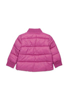 Short padded jacket with horizontal quilting ideal for mid-seasons. Applied heart-side Oval D patch adds a distinctive detail.
