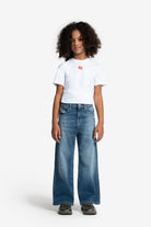 JoggJeans® D-Argjx relaxed fit in medium blue denim with abrasions and a workwear attitude. A comfortable waist-to-ankle oversize silhouette that stays soft on the leg. A jeans with wide volumes and full of character.