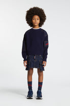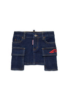Dark blue denim cargo mini skirt. A punchy model that combines comfort and character, thanks to the utility style side pockets. A garment in perfect Dsquared2 style, ideal for enhancing any look.