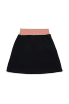 Short fleece skirt with elasticated waist stripes for a sporty-chic touch. The front pocket gives an original design, while the contrasting handmade embroidered Marni logo adds a recognizable and refined detail.