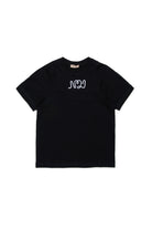 Soft cotton jersey T-shirt with short-sleeved sleeves. A simple yet distinctive garment thanks to the cursive logo N°21 made of contrasting color drawstring on the chest.