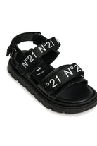 Sandals with logoed upper straps N°21. Tape belt at back. Calf leather upper and inner lining. Sole with thermoplastic rubber platform. Made in Italy.