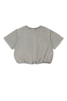 100% cotton T-shirt with embroidered logo and elasticated hem for a cropped effect.