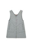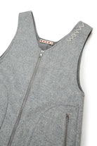 Sleeveless mini dress in cloth with zip front, featuring an essential and sophisticated design. Hand-embroidered logo on the shoulder straps adds a distinctive touch. A versatile garment that combines elegance and functionality.