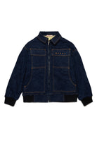 Long-sleeved marbled denim jacket. Inner padding makes it warm and soft, while tobacco-colored stitching enhances the design, making it ideal for facing winter in style.