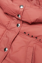 Padded jacket with removable hood. The slightly cropped fit and institutional logo in contrasting color make it a versatile and stylish garment perfect for tackling the winter season.