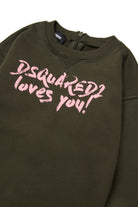 フロントに「Dsquared2 Loves You」のラバーエフェクトプリントが施された長袖マキシセーター・ドレス。ファッションが大好きな小さな女の子を意識したポップな文字があしらわれています。