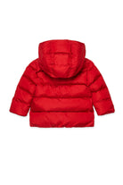 光沢のあるナイロンを使用した、フード付きのキルティングロングジャケット。コントラストカラーのディースクエアード2ロゴがアイコニックで、一目でそれとわかるデザインです。