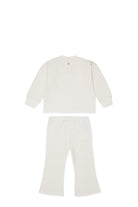 カジュアルなデザインにロゴプリントとハートグラフィックが胸元と脚にあしらわれたジャージセット。セット内容はコットン製のスウェットシャツとパンツ。