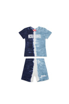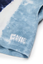 手染めによる3色のグラデーションが特徴のジャージー素材のジャンプスーツ。フロントにグラデーション加工のDiesel Denimロゴ。クルーネックTシャツ、半袖、肩のボタン留め。伸縮性のあるウエストとフロントのウェルトポケット付きショーツ。コットン100%製。