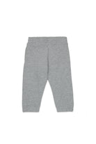 ロゴ入りの足元と裾がゴム仕様のスウェットパンツ。