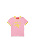 コントラストの効いたロゴとトリミングが特徴のTシャツ。100%コットン素材で、胸元に「Diesel Ind. For Successful Living」のロゴがあしらわれています。