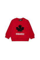 ディースクエアード2の象徴であるカナダのメープルリーフを、廃墟のような効果を持つフロッキー加工で再解釈したロゴ入りスポーツ・クルーネック長袖スウェットシャツ。スタイルと実用性を兼ね備えた一着。