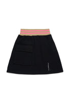 ショート丈のフリーススカートで、ウエストのストライプはゴム入り。フロントポケットが独創的なデザインで、対照的な手刺繍のMarni・ロゴが洗練されたディテールを添えています。