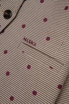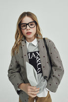 水玉模様の千鳥格子を使用したオーバーサイズの長袖ブレザー・ジャケット。洗練されたミックス柄が、コンテンポラリーで大胆な印象を与えます。パーティーや特別な日にも最適。