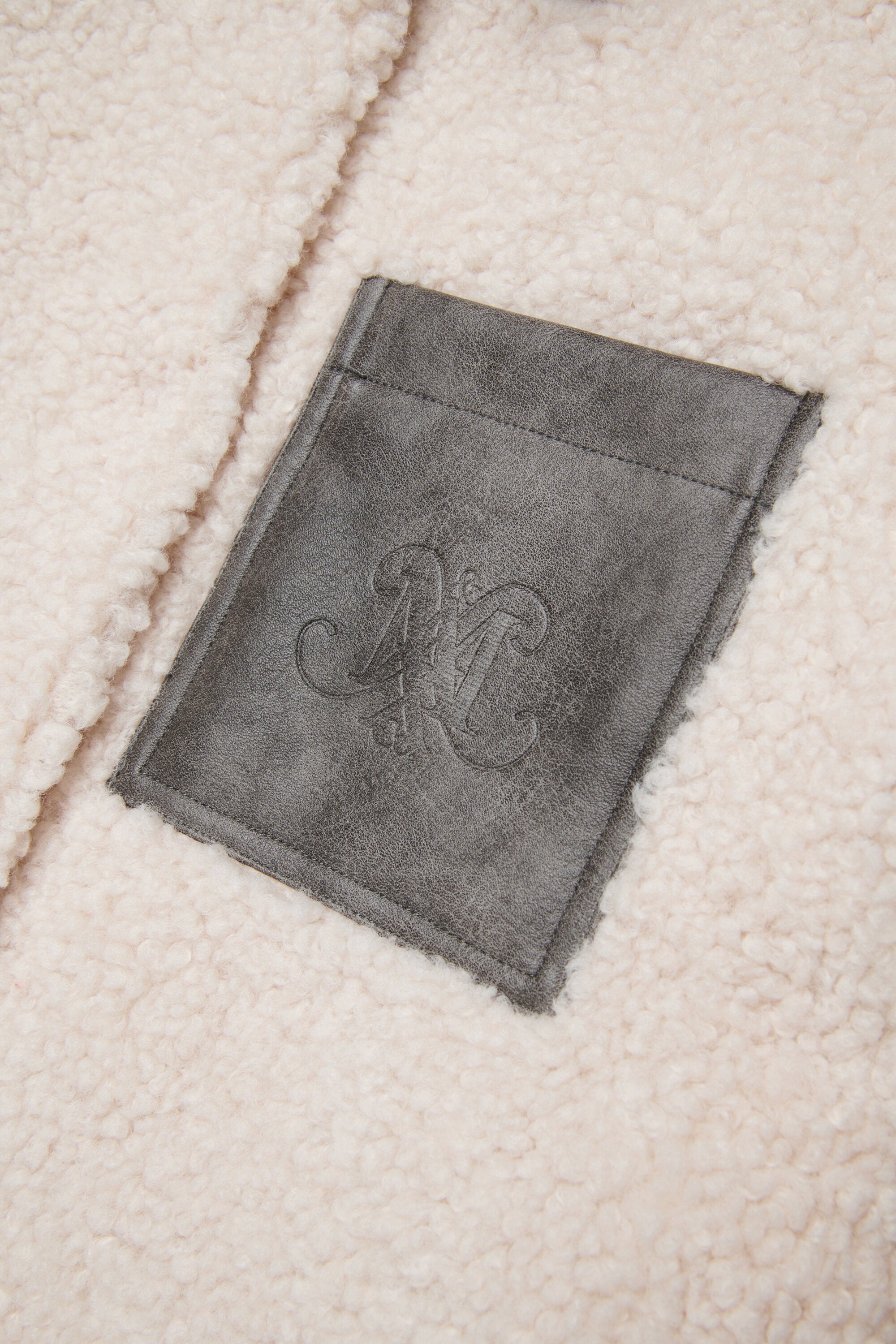 マキシ丈ポケットと襟にコーティング加工を施した長袖テディコート。ソフトな肌触りと独創的なルックスで、冬を暖かく過ごすための快適さとスタイルを兼ね備えた一着。