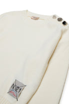 着心地の良さとスタイリッシュさを併せ持つ、逆畦編みのウール混プルオーバー。肩にあしらわれた3つのビジューボタンはそれぞれ異なるデザインで、エレガンスとオリジナリティを添え、個性的で洗練された一着に仕上がっている。