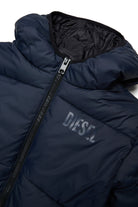 フード付きロゴ入り中綿ジャケット。寒い日にも実用的に対応できる、保温性とクリーンなデザインを兼ね備えた一着。袖のロゴが個性を引き立てます。