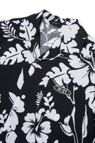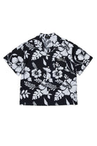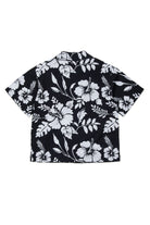 ロゴ付きアプライドとフローラル総柄プリントの半袖シャツ。