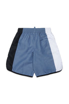 ロゴプリントとコントラストパネルが特徴のボクサータイプ水着。スポーティーなラインが特徴のモデルです。