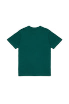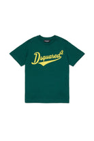 胸にロゴプリントが施された100%コットンのTシャツ。