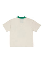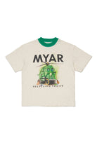 前面にロゴとイラストグラフィックが施された、100%コットンのTシャツ。