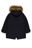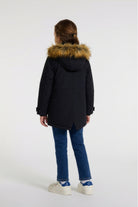 フードとポケット付きの中綿ジャケット。実用的で耐久性があり、冬の冒険にスタイルと快適さを添えて子どもたちをサポートします。