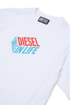 ロゴとグラフィック文字が胸元にプリントされた100%コットンTシャツ