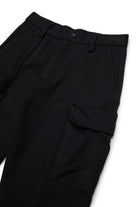 プントミラノ(ミラノリブ)を使用したカーゴパンツ。快適で流れるような着心地を提供する軽量素材。フロントのリブ編みと立体的なポケットがボリュームをプラス。合わせやすいカジュアルなオプション。