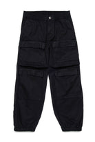 ガーメントダイ加工を施したギャバジン生地のカーゴパンツ。ベルクロ開閉式のポケットが実用的でダイナミックなディテールを加え、カジュアルなルックに最適です。