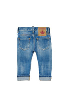 ユーズド効果とヴィンテージ感のあるディテールを施したスリムジーンズ。