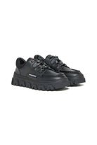 チャンキーソールのレザー製レースアップシューズです。アッパーに施されたエンボス加工のステッチが、サイドのロゴラベルとともに特徴的なディテールを添えています。デイリーからイブニングまで、あらゆるシーンに最適です。