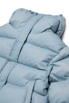 光沢のあるナイロン製のフード付き中わた入り防寒ジャケット。すっきりとしたモダンなデザインで、寒い日でも快適な着心地とプロテクションを提供します。