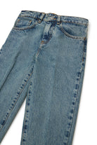 フッテージ付きミディアム・ブルー・スリム・ジーンズ