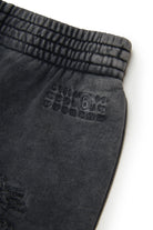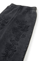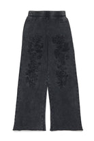 使い古したような風合いの加工を施したフリースパンツ。フロントに配した数字のロゴ刺繍と裾の生成りのカットが、現代的で個性的な美しさを演出します。