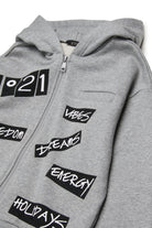 フルジップフーディー、ロゴとテキスト入りマキシパッチがフロントにあしらわれています。