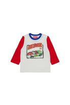 カラーブロックのディテールが施されたソフトなコットンジャージー素材の長袖Tシャツ。フロントのプリントはレーシング・ワールドからのインスピレーション。スポーティで独創的なルックに最適。