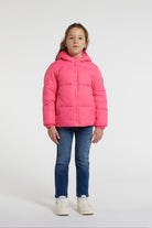 フード付きロゴ入り中綿ジャケット。寒い日にも実用的に対応できる、保温性とクリーンなデザインを兼ね備えた一着。袖のロゴが個性を引き立てます。