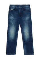 2010年、ダークブルーデニムのレギュラーフィットジーンズ。ストレートカットのデザインで、太ももは柔らかく、足首に向かって徐々に細くなるテーパードレッグ。着古したようなジーンズは、どんな装いにも個性をプラスする。