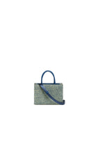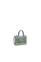 インスティテューショナルロゴが主役の、日焼け加工デニムのDSL 3Dバッグ。手提げにも肩掛けにもできる、アイコニックなスタイルのミニショッパー。