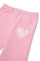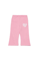 ハートロゴプリントのスウェットパンツ。ややフレアな裾とウエストのゴム仕様が特徴です。