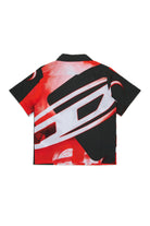 ロゴ入り半袖シャツ。全体に抽象的なグラフィックプリントが施され、ピュアコットンで作られています。