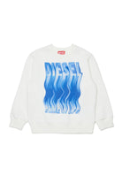 クルーネックのスウェットシャツ、フロントにロゴプリントと大きなウェーブプリント。