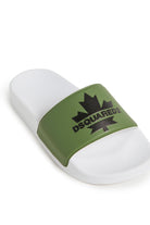 モダンなデザインのスリッパです。カラートーンのMaple Leafロゴ入り。ポリ塩化ビニールのアッパー。コントラストカラーのポリウレタンソール。イタリア製。