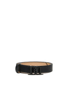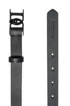 マットD2バックルのブラック本革ベルト。一目でそれとわかるアクセサリーは、どんなにミニマルなルックにも個性と個性をプラスします。
