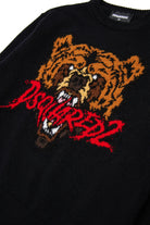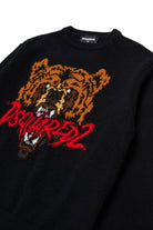 ベアのグラフィックとDsquared2のロゴが入ったウール混の長袖プルオーバー。ホラーの世界を皮肉たっぷりに表現し、カナダの原生林を連想させるディテールは見逃せない。