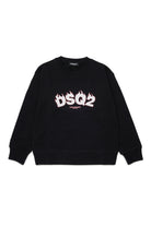 DSQ2のロゴがフレイムエフェクトでプリントされたクルーネックスウェット。耐久性のあるコットン素材を使用し、クラシックなスポーティーディテールで仕上げたカジュアルな一着です。