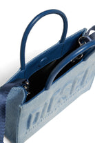 ロゴがエンボス加工されたダブルハンドルバッグ。必需品をスタイリッシュに持ち運ぶのに最適です。