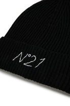 ウール混紡のリブニット製ビーニーで、折り返し部分にコントラストカラーのN°21ロゴが刺繍されています。ソフトでぴったりとフィットするこのアイテムは、寒い日にスタイルと快適さをプラスする完璧なアクセサリーです。