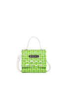 マグネットクロージャー付きのJoy Microバッグ。ジオメトリックパターンのボディにMarniのインスティテューショナルロゴがあしらわれています。ラバーハンドル。手提げと斜めがけが可能。リボン付き調節可能(固定)ショルダーストラップ。 寸法:高さ13cm、幅14cm、奥行き8cm。ハンドルの長さ:46cm